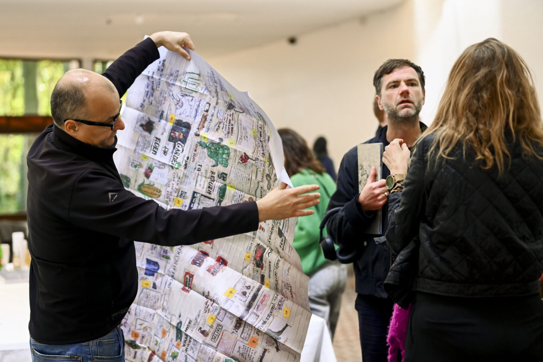 Monsters Assembly is a collective that is convened by wpZimmer. It is initiated by Helga Baert and Gosie Vervloessem (wpZimmer) and is guided through the artistic practices of Leonardo Delogu and Carolina Mendonça. Monsters School is a collective work authored by Monsters Assembly: Leonardo Delogu (artist), Carolina Mendonça (artist), Gosie Vervloessem (artist-curator), Dušica Dražić (artistic advisor), Alex Schuurbiers (community worker) and 8 participants Prisca-Agnes Nishimwe, Laurent Delom de Mézerac, Joud Toamah, Lois Loumonga Brochez, Elien Verschueren, Kaori Ishiguro, Denys Shantar and Miles Fischler.