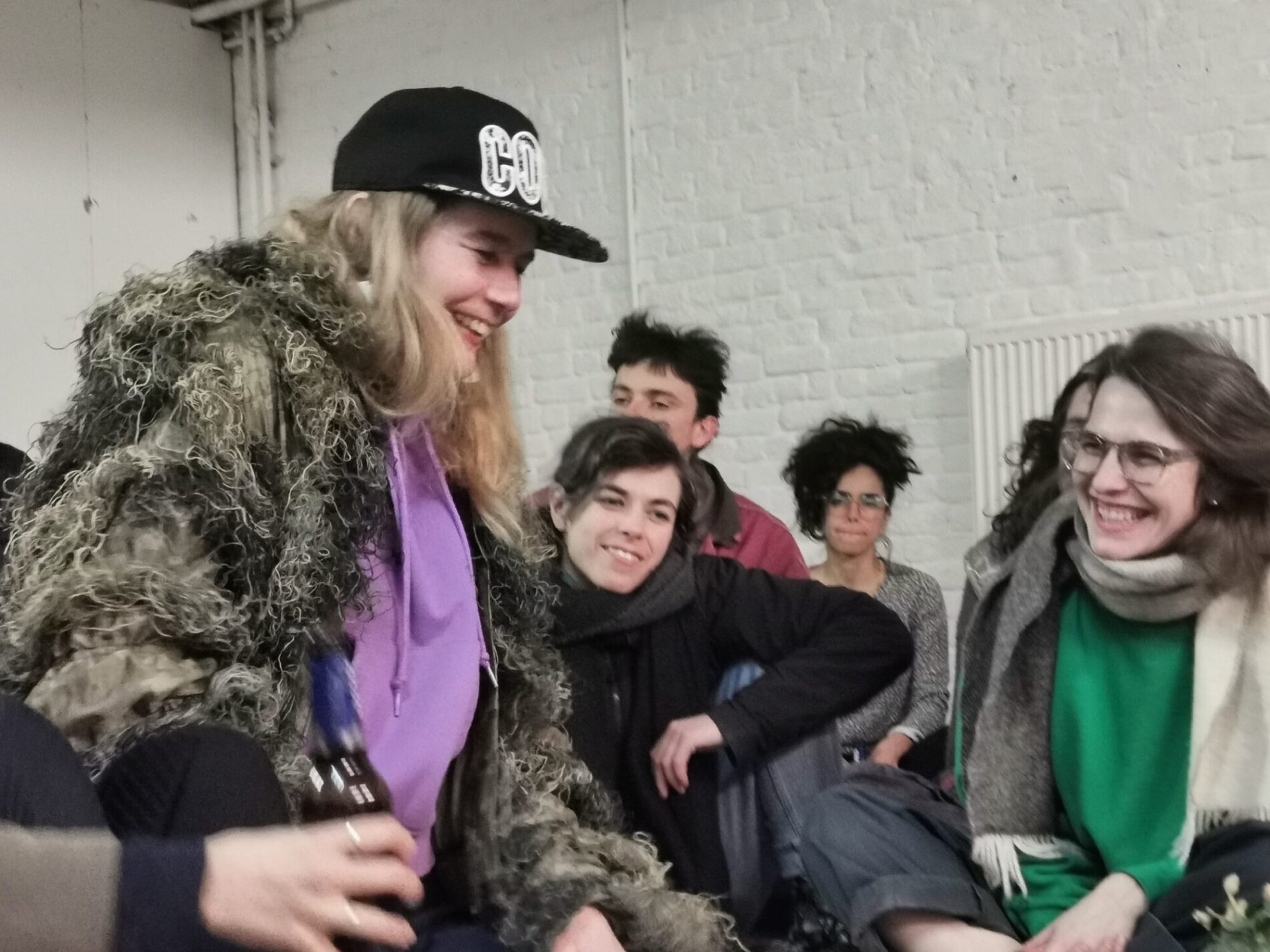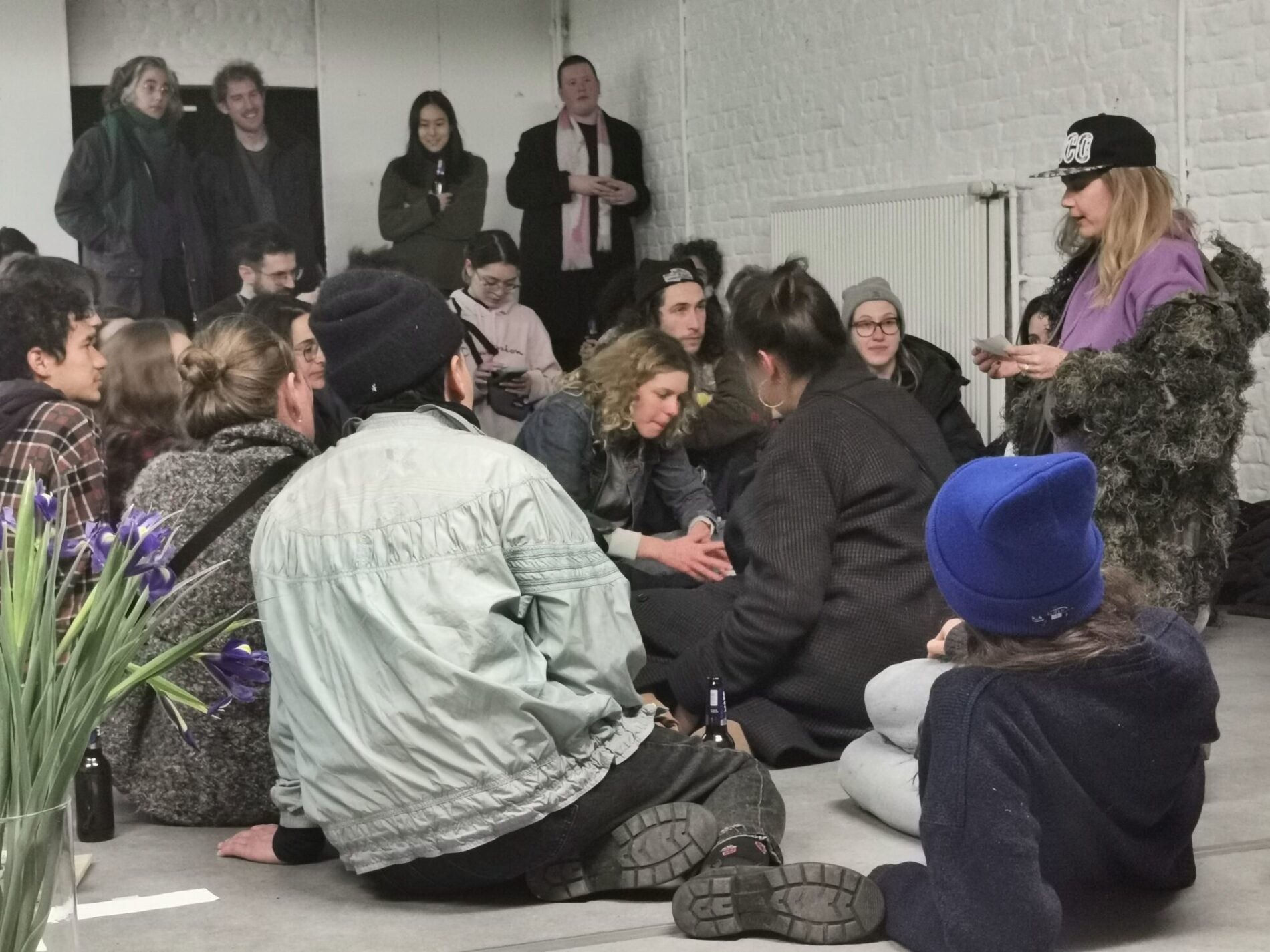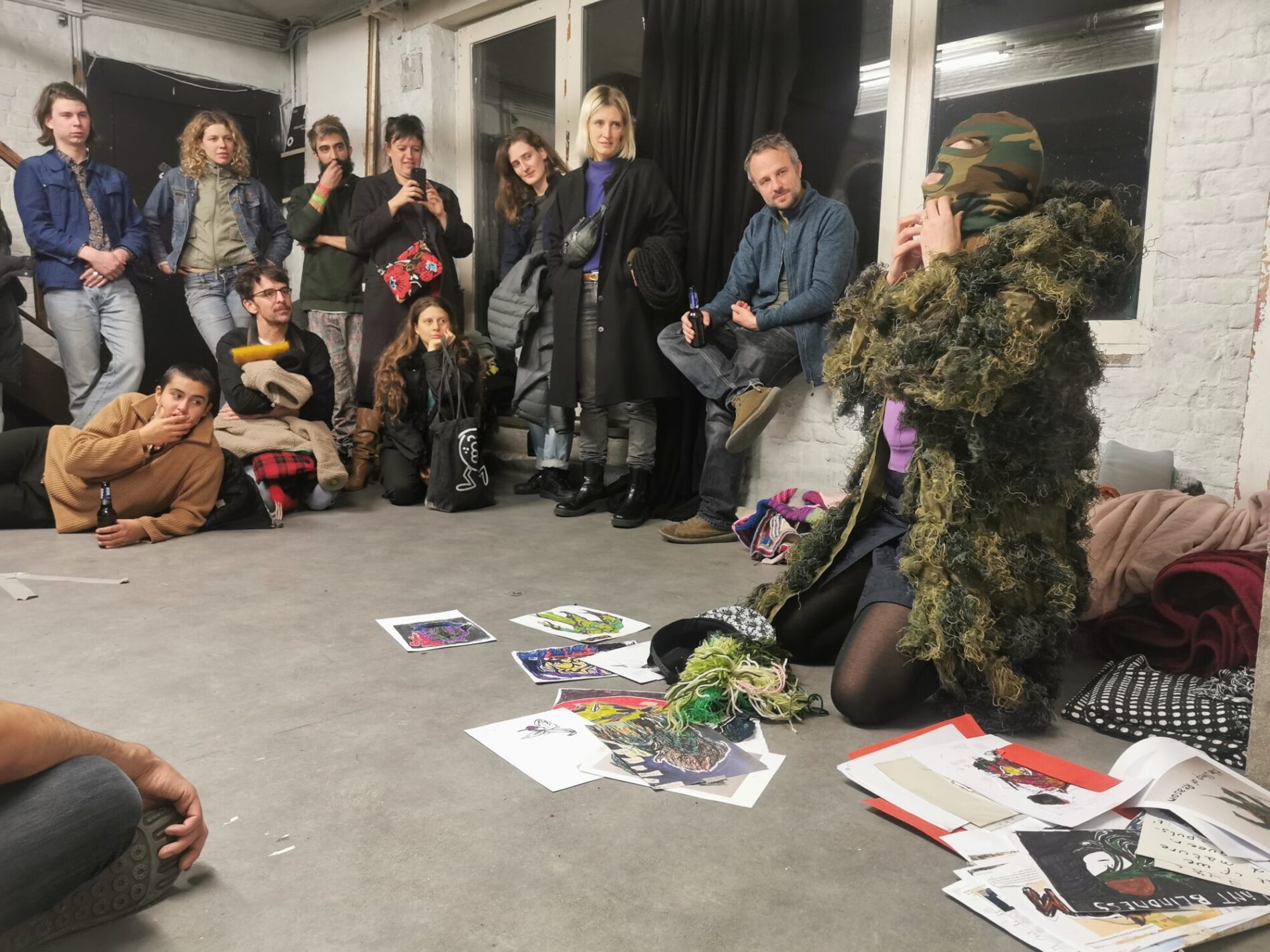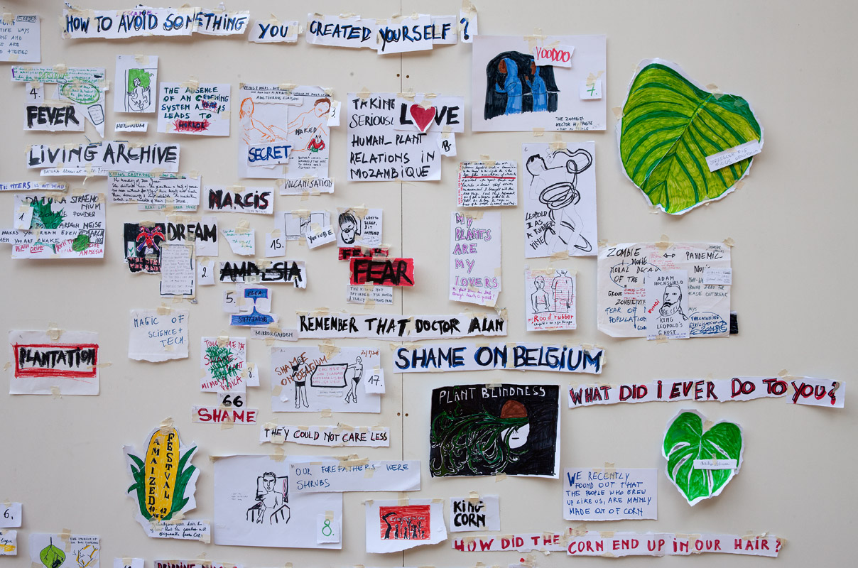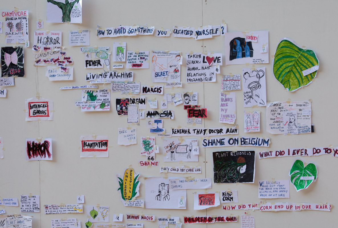 Monsters Assembly is a collective that is convened by wpZimmer. It is initiated by Helga Baert and Gosie Vervloessem (wpZimmer) and is guided through the artistic practices of Leonardo Delogu and Carolina Mendonça. Monsters School is a collective work authored by Monsters Assembly: Leonardo Delogu (artist), Carolina Mendonça (artist), Gosie Vervloessem (artist-curator), Dušica Dražić (artistic advisor), Alex Schuurbiers (community worker) and 8 participants Prisca-Agnes Nishimwe, Laurent Delom de Mézerac, Joud Toamah, Lois Loumonga Brochez, Elien Verschueren, Kaori Ishiguro, Denys Shantar and Miles Fischler.