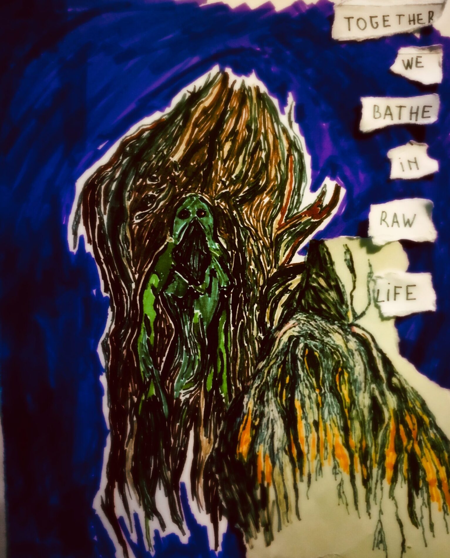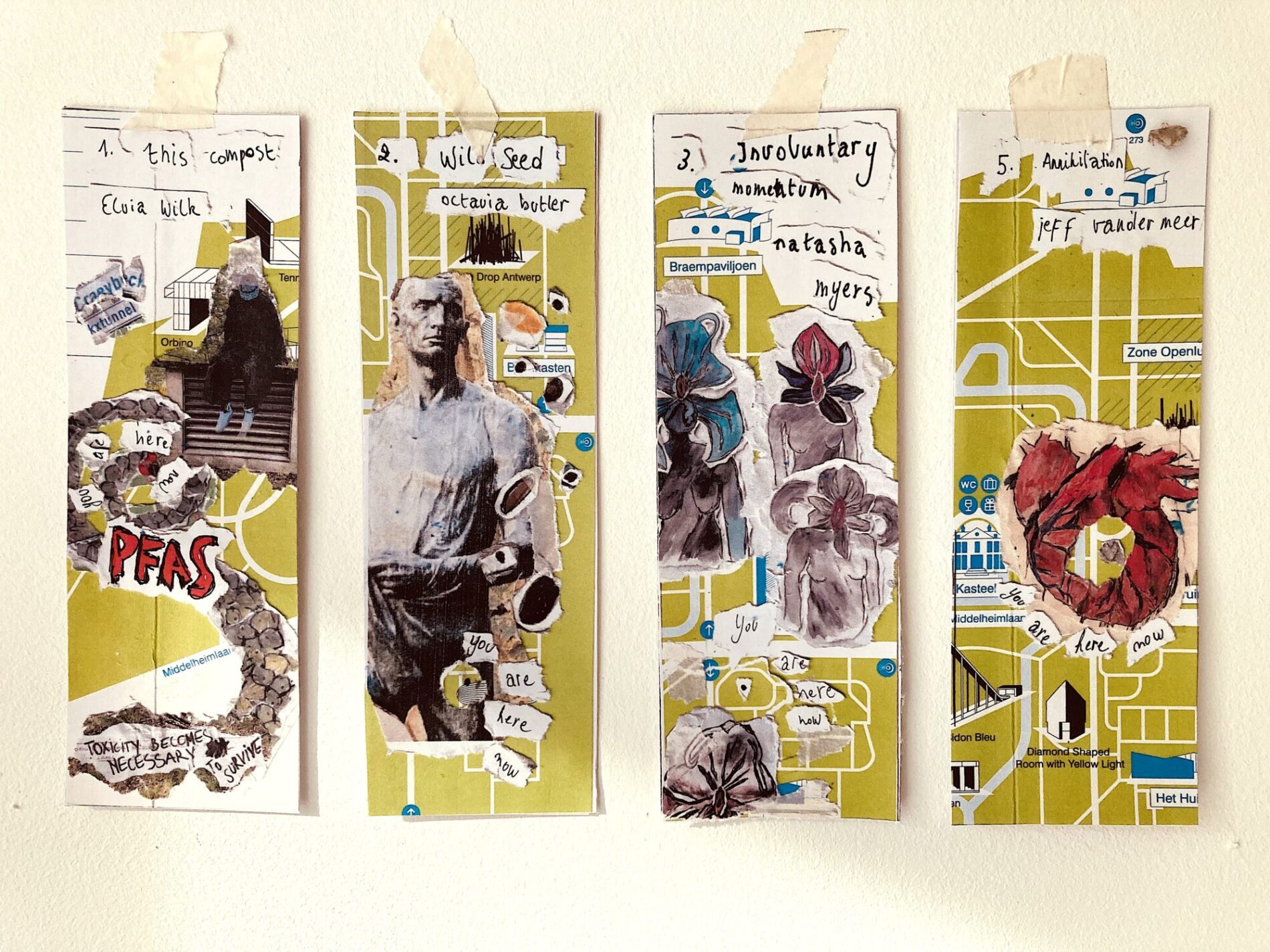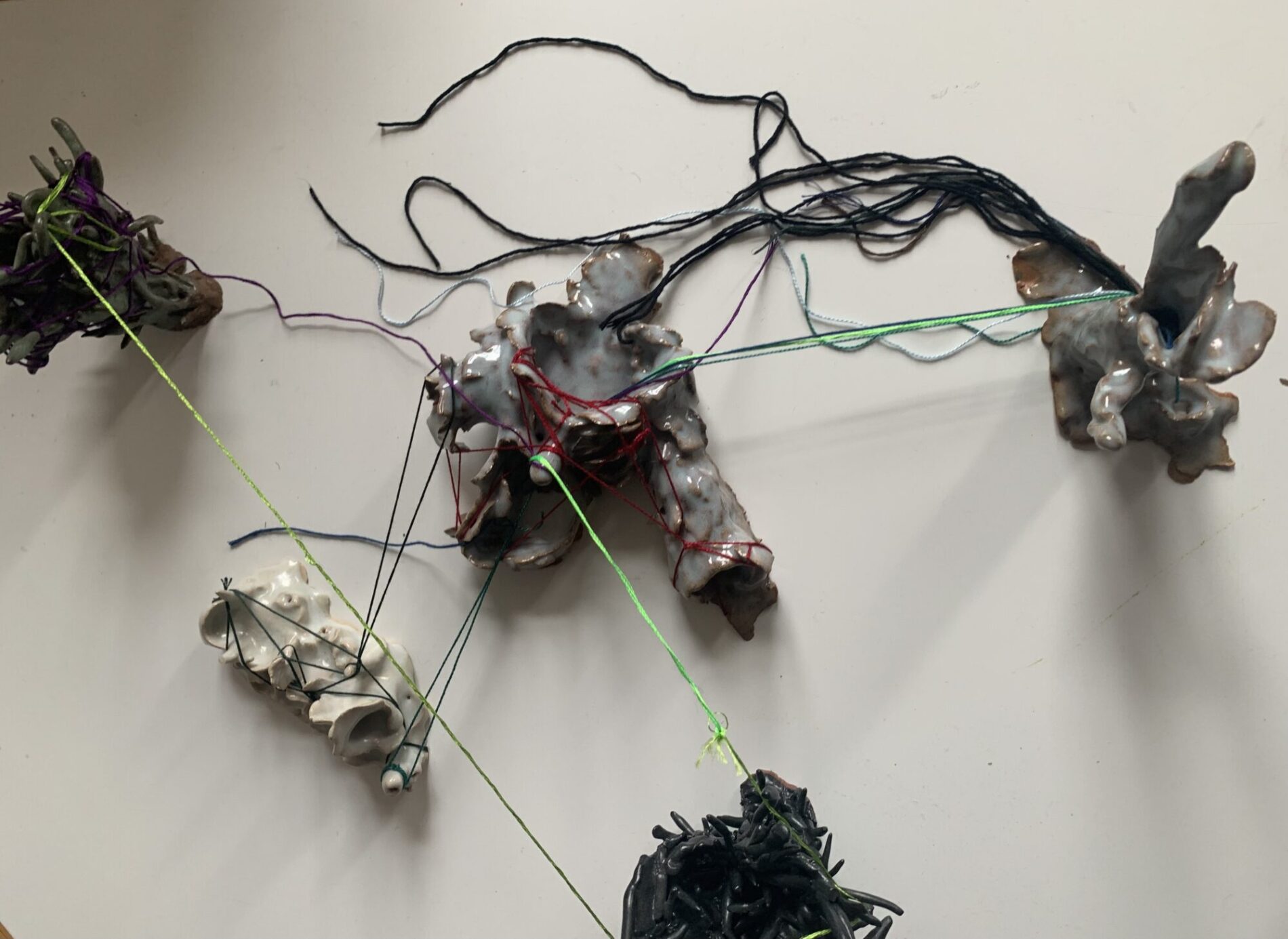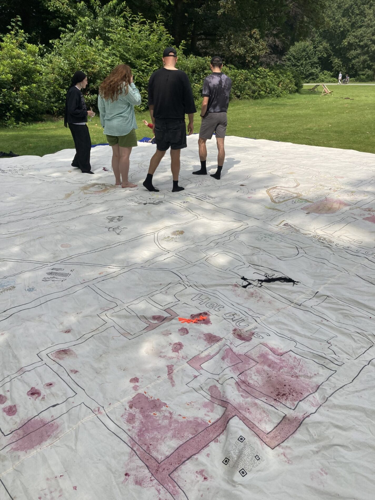 Monsters School (2024, Middelheim, part of Come Closer expo) is a collective and durational experiment, a performative transformation of “school” into a space of co-creation. This process of becoming other is a practice of unlearning and undoing while being many. Therefore we sustain a space of studying and practicing together, sharing knowledge and experiences. The process of undoing that we envision is not a process of healing but in the first place a process of co-creation that is rooted in vulnerability, but equally pleasure. We seek in the pleasure of undoing (rather than doing), a sensuality that is rooted in the body and the senses. The school studies and experiments with what monstrosity could be – a monster has blurry borders, is excessive, hypersensitive – an incoherent assemblage. During Monsters School we are empowered through becoming a living monstrosity. As monsters we show something that is not easy or comfortable to see or perceive. We speculate with different narratives and experiment with tools and formats that explore and enhance the monstrosity in ourselves by becoming more attuned to and challenging the world we inhabit. We see this exploration as necessary for survival and creating livable worlds.